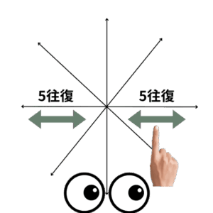 5.次に斜め上下、これは左右斜めどちらからスタートでも構いません。いずれも5往復ずつ行います。