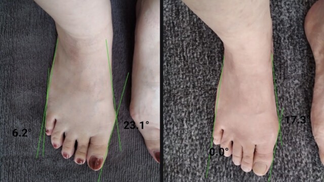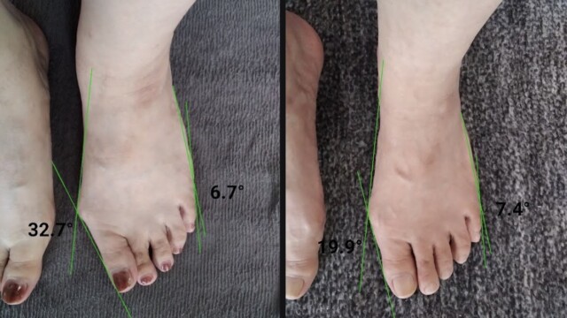 ↑母趾:23.1°→17.3°(-5.8°)/小趾:6.2°→0.0(-6.2°)/足幅90.7mm→86.4mm (-4.3mm)